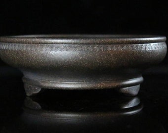 We also have a few semi-antique pots and pots by famous British potters. Limited edition - MBSS numbering China Yi Xing Purple Clay Bonsai Pot for collection Suitable for S size Bonsai quality rounded pot for Bonsai from RM98 onward donation look for photo below indicated package AA BB offered for a limited time. Round Oxide Mame Bonsai Pot with Rivets by Ken To 200529006.